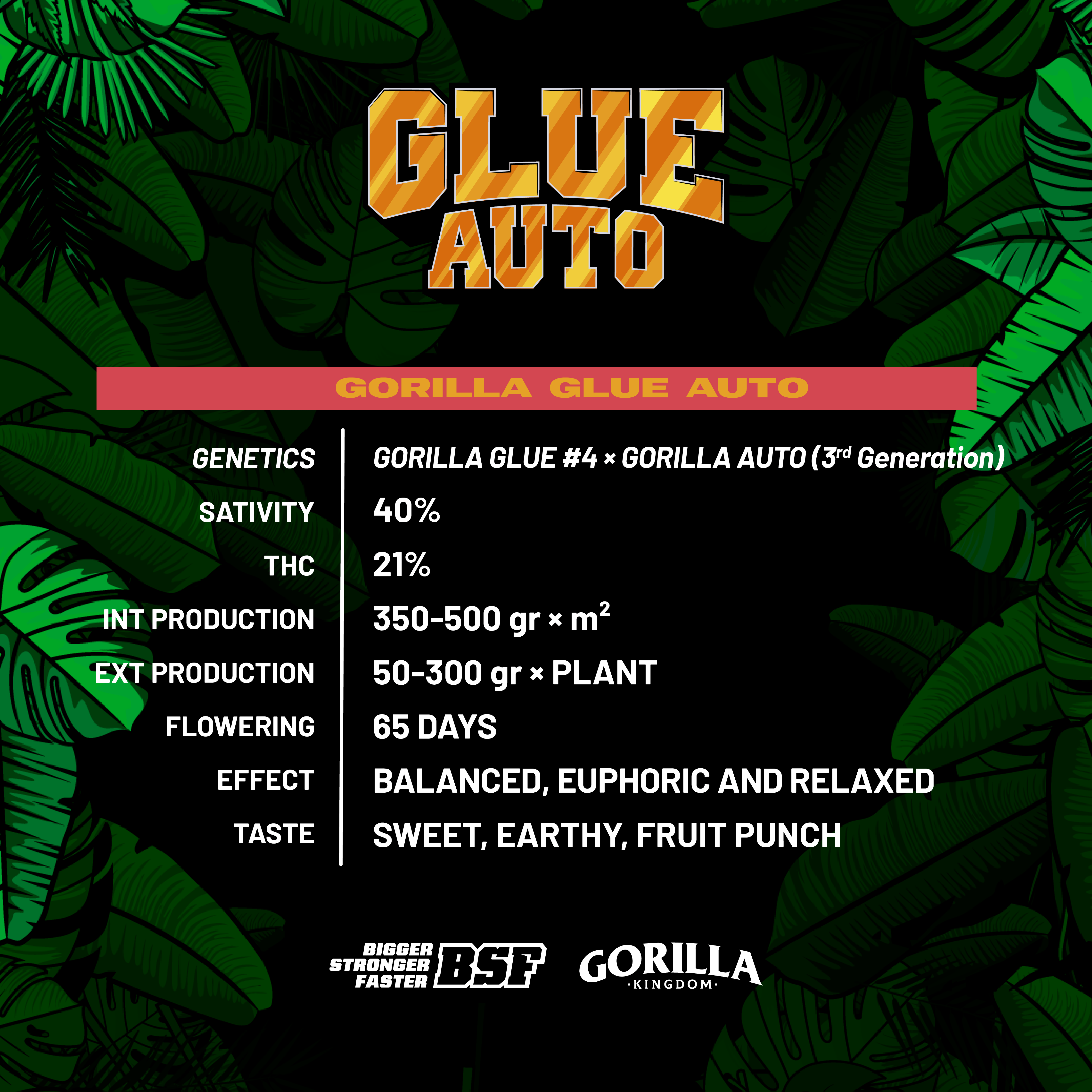 - GENETICS: GORILLA GLUE #4 × CLON ELITE AUTO (3rd GENERATION)